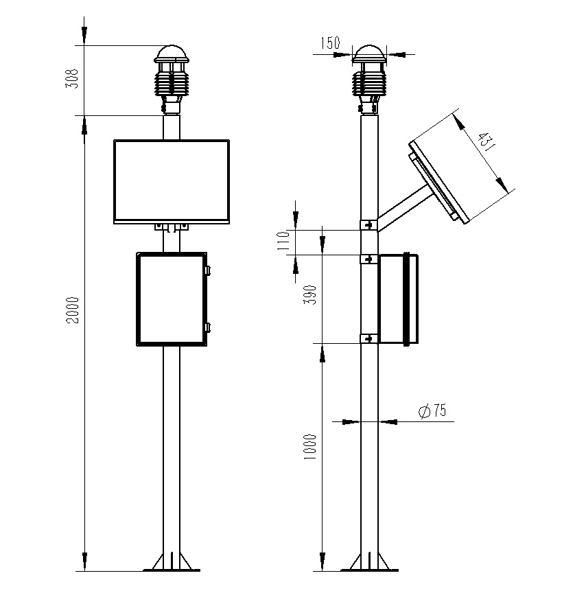 ⛎新产品简绍:九要素一体式气象站创新性的采用九要素一体式传感器,可对风速、风向、温度、湿度、气压、光学雨量、总辐射、pm2.5、pm10等气象要素进行实时观测